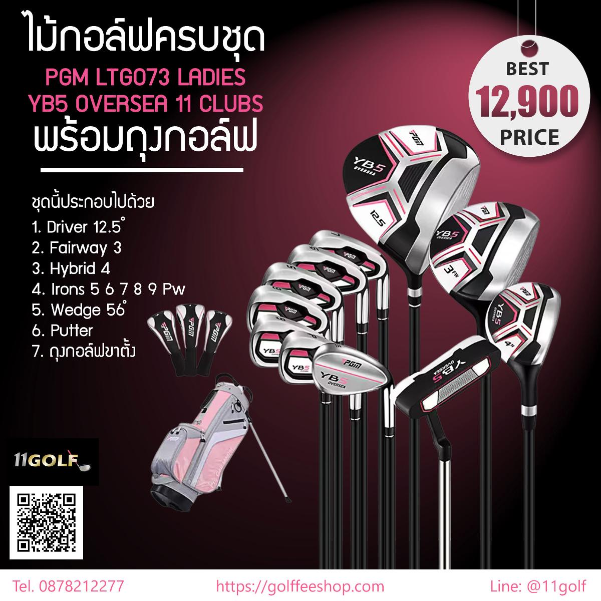 อุปกรณ์: ไม้กอล์ฟมือขวา 11 ชิ้น + ถุงกอล์ฟขาตั้ง